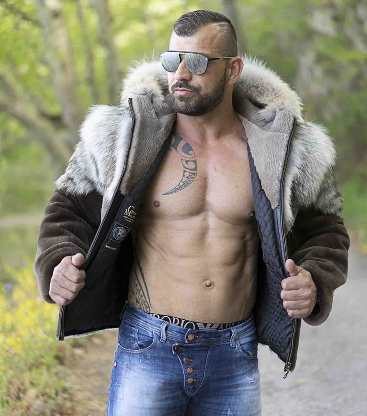 Men's Coyote Fur Jacket With Brown Biber Hood